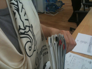 経理部より 「ほぼ日」は会社組織で、わたしも会社員なので、会社のお金を使うときは経理部に書類をまわしたりしています。 週に2、3回の割合で書類をまわしていたのですが、 「みっちゃんさ、いっつも書類まわすとき ダブルクリップでとめて 提出してるでしょっ。」 う、うん。 ちっちゃいダブルクリップを欠かさず机にキープしておくことがプチマイルールなくらい、日々愛用しています。 「処理中の案件はね、 こうやってまとめておいてるんだけど ダブルクリップだとかさばるのよ。 ほら。」(写真二枚目) 「あとね、わたしの机にたまるのよ、 ちっちゃいダブルクリップが。」 (写真三枚目) 「えー、だって、なんか ちっちゃいダブルクリップって かわいいじゃない。 ミニチュア的なかわいさがあるよね。」 と反論したところ、 長年、そんな風におもってたなんてしらなかったよ。 かわいいクリップで提出したら、またそれをかりにくるね。 2011/06/21 20:46 |