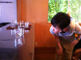 あすが最終日です! 高橋禎彦さんの 「コップ屋 タカハシヨシヒコ」展、あっという間に会期があす24日までとなってしまいました。 「ほぼ日」を読んで来てくださったかたもおおぜいいらしたということで、高橋さんはじめ、スタッフ一同おおよろこびでしたよー! 開廊時間は、きょう(23日)は19時まで、あす(24日)は17時までですので 「行こうかな‥‥」というかたで 「行ける!」というかたはぜひ会期中に足をおはこびくださいませ。 きょうあすは高橋さんが在廊していらっしゃいますよー。 さきほどふらっと寄りましたら弊社の ためつすがめつ、見ておりました。 それぞれ「家に連れて帰る子」をえらんだみたいです。 そして、初日にはなかったコップがふえてるような‥‥? 高橋さん、どうやら、だいぶ数がすくなくなったので新作を補充したみたいですよ。 2011/06/23 17:28 |