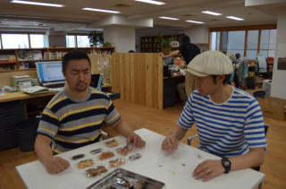 シャッフル。 「シャッフルしましょ〜」といって、武井さんと永田さんに声をかけました。 糸井事務所のお昼の恒例行事、明日のメニューを確認して並び順をきめる「シャッフル」です。 席を一瞬はずして戻ってみると‥‥。 武井さんが、せんべいのカンカンからせんべいを取り出し始めたぞ。 3列にならべはじめた。 「メニューのシャッフルをね。」 ほ、ほう。 な、なるほど。 あ、ま、まあ、じゃあ、それはそれで‥‥。 バナーは、黒豆でいいかな‥‥。 って、ちが〜う! 2011/07/05 17:08 |