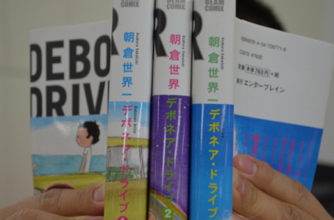 朝倉世界一さん! あ、シェフが漫画を‥‥3冊同時に読んでいる! 訳は無いじゃあありませんか! どうしたんですか? 「朝倉世界一さんといえば、 思い出しませんか、 茂木さん!」 あ、ブリーフ! 「そう、あの 白いブリーフのコンテンツで イラストをかいてくださった 朝倉世界一さんです。 彼の漫画、 『デボネア・ドライブ』を 購入したわけですよ。 それが、さきほど届いて うっとりしているところです。」 ほほう。 ほほう。 これは‥‥ 「マンガでドミノ」ではまだ繋がってません‥‥ね。 いつか、きっと! 2011/07/14 10:45 |