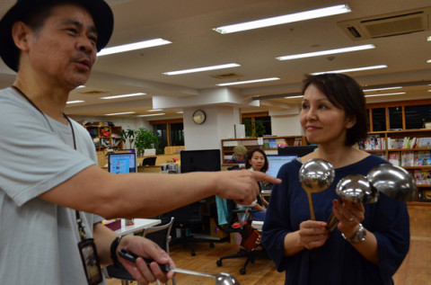 お玉通信。 先日も社長は お玉通信をしておられました。 実は、昨日も、です。 「あ・あ・パラボラです、パラボラです、 あ・あ・応答ねがいます、パラボラです」 なんでも、その先日イエにもってかえったお玉が、会社のお玉だった、と判明したので、交換するために、お玉をもってきたのでした。 キッチン番長・リカSの 「あなたが泉におとしたのは、 銀のお玉か、 銀のお玉か、 銀のお玉か?」 など、微妙に古めかしく登場したことはこの際おいておこうじゃないか。 「あ、これこれこれ。 やっぱり会社のお玉は 大きくてさ。 はい。じゃあ、これと交換。」 2011/08/02 10:00 |