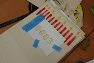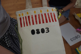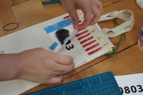 できあがってひと安心。 満足したわたし。 そんなところに先生の偶然性をたのしむお言葉が。 「せっかくだから日付もいれましょう。 メモリアルな感じになって かわいいですよきっと。」 せんせい、すてき。 8月3日生まれの子なんです。 「0803でいきましょう!」 さっそくまたその場で数字を紙にプリントアウト。 カッターで切りぬきしてスポンジポンポンで色をつけました。 お誕生日仕様、完成です! やったー。 あとはよく乾かすだけですね。 こんなかわいいカスタマイズが先生にかなりアドバイスをいただきながらですが、わたしにもできました。 ちょっとしたはみだしもかわいい。 そんな偶然性をたのしむってすてきですー。 おもしろそうだと思ったかた、レッツチャレンジです。 きっとたのしいですよ。 2011/08/04 13:00 |