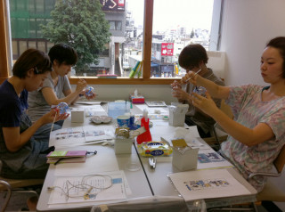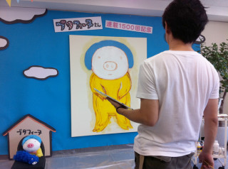 ライブペインティング! 今日は、記念すべき、 「ブタフィーヌさん」の連載1500回です。 2005年11月7日にスタートし、平日毎日、年末年始もお休みすることなく、今日のこの日を迎えました。 そして、たかしまさんから、いつも読んでいただいてる、ほぼ日の読者のかたにむけて、お礼がしたいです、と言っていただき、弊社、「スペース・アオヤマ」という小さなギャラリースペースで、一日、ライブ・ペインティングをしていただくことになりました。 いつものように、 たかしまさんへの激励メールも大歓迎です。 江戸風鈴隊も、絶賛集中中です! 2011/08/05 12:14 |