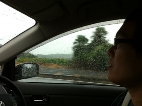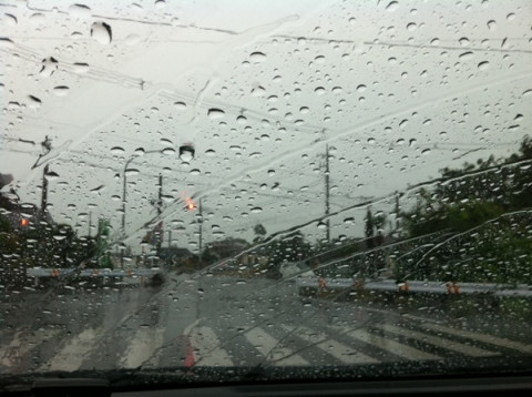最後の取材地点はほんとうにどしゃ降りでした。