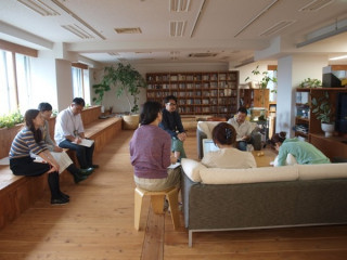 雨の月曜日、しっとりと窓際でミーティングが行われています。