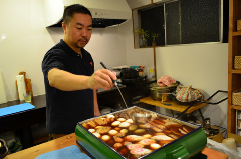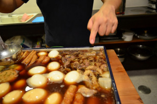 静岡おでんの作り方。 昨日の「勉強の夏、ゲームの夏。」で登場した「静岡おでん」ですが、たいへん、美味しかったのです。 シェフは、お店を出すべきだと正直おもいました。 彼の引退後の道はおでんやさんです。 きまりです。 それはさておき、作り方をきいてきました。 まず、材料は静岡の「蒲菊本店」で手に入れます。 こちらは、シェフの同級生の弟さんのお店です。 いわば、少年時代のご近所さんだそうです。 静岡おでんセットと青のり削りぶし粉セットを購入しました。 作り方は、こちらのページにあるものとほとんど変わらないのですが、シェフのおばあさんが、焼津出身のせいなのか、多少違う部分がありますということでして。 ■牛すじのほかにも 「アキレス腱」も入れる。 下ごしらえは、 1)一回ゆでこぼして、 きれいに掃除する。 2)その後2時間ほど、コトコト煮る。 この煮汁が、おでん出汁になるので、 だし汁には削り節をいれない。 ということだそうです。 できあがったら、青のりとだし粉をふりかけて、からしで食べるのが静岡流でございます。 よろしければ、つくってみてくださいね〜! 2011/08/24 18:16 |