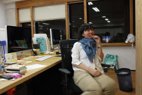 出張中のハリさんへ。 無事に、出張中でしょうか。 ハリさんが、旅立たれて5時間。 すでにハリさんの席では、 ハリさんが、毎朝拭き掃除を欠かさない清潔な机の上で、クッキーをぼろぼろ食べたりしています。 鬼の居ぬ間に、ここぞとばかりに、やりたい放題をキメています。 せっかくだから、記念写真をと思って、カメラをかまえたら、 「ちょっと待って! お気に入りの キーホルダー持ってくるから!!」 と言って、その犬(キーホルダー)の散歩を机の上ではじめました。 留守は、とやまちゃんが守っています。 安心して、出張がんばってください。 2011/09/20 21:06 |