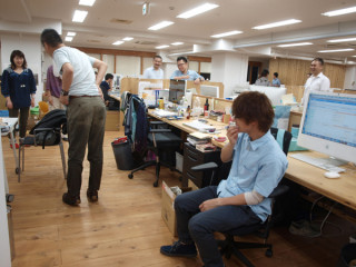 「ほぼ日」のオフィスはただいま人が帰りはじめたり、居残り組がいたり。