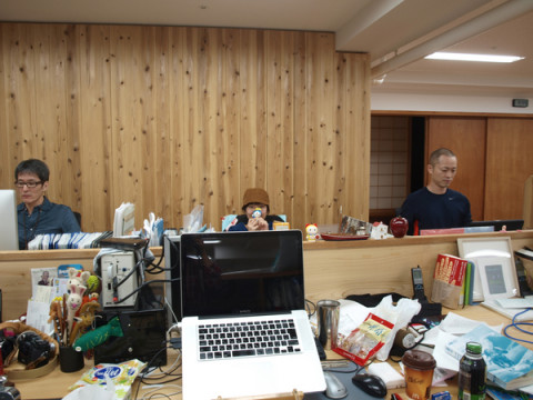 前の住人 本日の午後は打ち合わせがあまり入っていないので集中して原稿を書いたり連絡を取ったりしています。 ‥‥と思ったら、おなじようなことを考えている人たちが席の向かい側にいました。 「前の列」 がミーティングも入れず全員揃っているのはめずらしいのです。 全員、忙しそうにしている‥‥のですが‥‥おっくん(1枚目)は、窓際でひそかに何かの撮影です。 何を撮っているのかわかりませんが、うしろあたまが、何かうれしそうです。 ハリーとオトヤにはさまれたさくらはまるで子どものようです。 こんな人たちを前に、いやはや、また原稿の世界に戻ります。 みんな、グッドラック! 2011/09/26 17:11 |