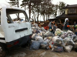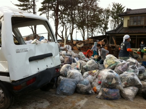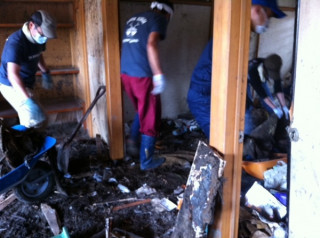 津波に遭ったお宅を掃除しています。