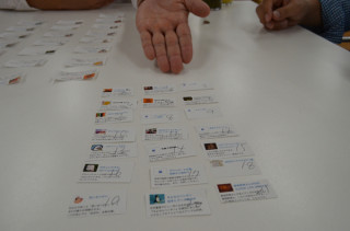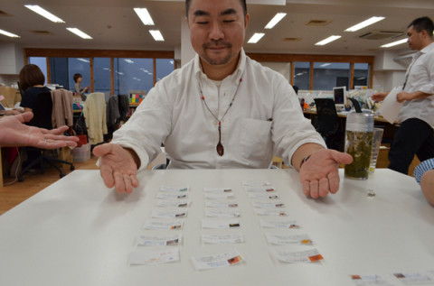 こたえあわせ〜〜! さてみなさん。 昨日わたくし、 わかりにくいクイズを出題させていただきました。 こちら、 「製作中」ヘビーリローダーの皆様向けの難易度の高い質問でした。 つまり、昨日の「シャッフル」の図は、いつもと、どこが違うか、というのがクイズなのでした。 答え合わせです。 今日も、もちろんシャッフルをしております。 2枚目が「いつもどおり」。 3枚目が「きのうの」です。 もう、おわかりですね。 「シャッフルの紙の大きさが いつもよりも小さい」 が、答です。 正解者は〜〜〜。 じゃん! -----いつもより、紙が小さいような気がしますが…。 (くまくま) ----- くまくまさん、おめでとう! 私が把握しているかぎり正解はお一人でした。 正解を祝しまして、くまくまさんには、絵本「さよならペンギン」に糸井重里のサインをいれてプレゼントいたします! のちほど、メールをいれさせていただきますね。 それでは、また突然「◎◎クイズ」があるかもしれません。 2011/10/04 15:26 |