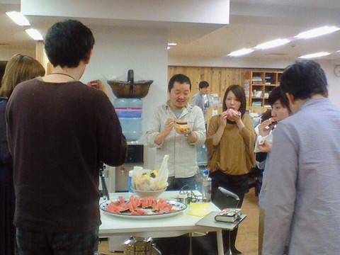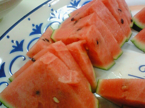 たぶん今年最後の スイカを切ったんだよん。 今はもう、秋。 (誰も〜いない海〜〜♪) でもこんな時期に送ってくださったということは、きっとおいしいに違いない! でもでも、みんないまさら、食べたいかしら? スイカ……。 結果から言わせてもらうとスイカはとても甘くおいしく、みなは長袖をめくり上げつつ、スイカにかぶりついたのでした。 それにしても、小玉とはいえ、4玉切って出したんですよ? それを食べ尽くしてしまうとは。 うちも、大所帯になったもんです。 (ご飯を炊くときは一升炊きを 二回転です。) 天高く、みな肥えるがいい。 2011/10/04 21:32 |