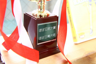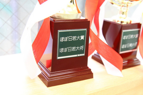 体力年齢が若い者には トロフィーがあります。 「21世紀健康増進革命連合委員会」がわざわざ、業者に発注しました。 体力年齢第1位の乗組員には 「ほぼ日の若大将」として第2位の乗組員には 「ほぼ日の青大将」として、それぞれ、トロフィーが授与されるようです。 えーと、つまり 「ほぼ日若大賞」の「若大将」、 「ほぼ日若大賞」の「青大将」として表彰されるようですね。 おっと、その黄色いDVDはなんでしょうか。 どうやら、何らかの特別賞の副賞のようです。 2011/10/14 14:19 |