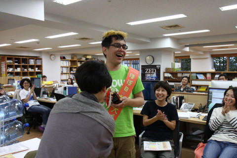 ほぼ日の若大将は‥‥ いよいよ、栄えある第一回「ほぼ日の若大将」を発表します! これまで、どの種目別優秀者にも名を連ねてこなかった、まさしく、奇跡のチャンピオン! 実年齢より 「マイナス13.4歳」というなんとも若々しい体力年齢を持つことがわかった、 すごい! 本人もビックリしてる! というか、なんだこのオチ! 「みなさま、ありがとうございます。 来年50になりますが まだまだ、 やれることがわかりました。 来週からも どうぞ、よろしくお願いいたします」 おめでとう、若大将! 2011/10/14 17:52 |
