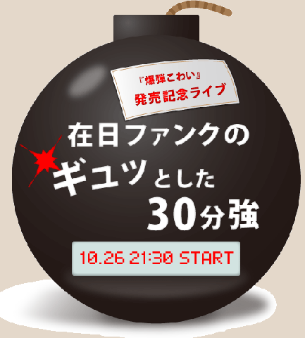 昨夜のファンク! 昨晩の在日ファンクの中継は、たのしかったですねー! 大興奮! もっと見たい! という方はぜひ、彼らのツアーのほうへ!! わたしも、ぜったい行きたいです。 わたくし、中継中にだめだめ女子アナとして、告知内容を読ませていただきましたが、ぜんぜんダメっ子だったので、ここにもお知らせしておきます。 セカンドアルバム 「爆弾こわい」絶賛発売中! 「爆弾こわい」発売記念ツアー! 10月29日(土)福岡10月30日(日)広島11月12日(土)北海道(sold out) 11月19日(土)鹿児島奄美 追加公演11月25日(金)東京キネマ倶楽部 だそうです。 生でハマケンのステップを見守ろう! 在日ファンクのみなさん、ありがとうございました。 ご覧頂いたみなさん、ありがとうございました! 2011/10/27 15:34 |