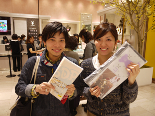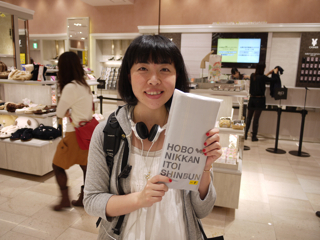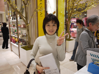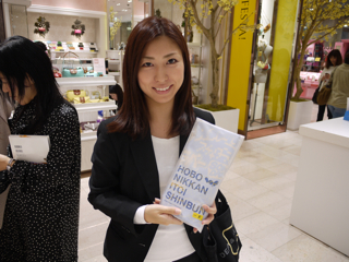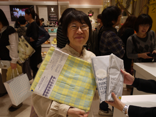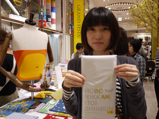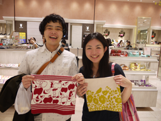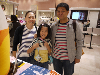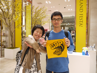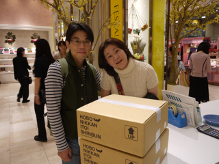 三泊宣言、実行! 大阪・大丸梅田店のみなさま、お世話になりました。 イベント自体は8日(火)まで続きますが、ここで山下、お先に現場から引き上げさせていただきました。 ただいま東京でこれを書いています。 「三泊宣言」は宣言通りに遂行されました。 イベント3日目も大盛況。 お気に入りのハラマキのサイズがなくてご購入いただけなかったみなさま、誠に申し訳ありませんでした。 とくにXSサイズが不足しました。 Sサイズも減ってきています。 Fサイズは若干在庫が多めにございます。 あすハラマキの追加が届く予定ですが、在庫があるものを取りいそぎ集めてのご提供となりますので、 「ハラマキ・アソート」 になるかと予想されます。 さらには次の週末に向けて、別なアイテムの投入も がんばれキノピー。 本日もたくさんの写真を撮らせていただきました。 とはいえほんとはもっとたくさんの方にお会いしているのです。 たまたま写真を撮るゆとりがあったときのスナップをきょうも並べさせていただきますね。 カメラは あくまで現場のお客様優先で、できるだけのテキスト中継、がんばってね、よろしくね! というわけで、もう一度。 「三泊宣言」は宣言通りに遂行されました。 イベントは8日まで。 大阪のみなさま、引き続き遊びにきてくださいね。 ありがとうございました! あーー、たのしかった!! ※ちょっとだけ情報 ・本日 ・上から25枚目の写真。 このおふたりはすばらしいですよー。 多くは語りません。 このページでご紹介している (M)さんという女性は、 この左のかたなのです。 わー、武井さーーん! このおふたりに会ったよー。 ラブラブでしたよーー! 2011/11/04 00:12 |