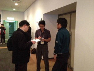ご声援お願いいたします! こんにちは。 駅伝おじさん・西本です。 本日、更新された 「ほぼ日手帳WEEKS」のページで紹介されている、青山学院大学陸上部マネージャー 橋本直也さん。 「ほぼ日手帳WEEKS」を駆使して50人もの大所帯のチームをマネージメント。 目指すは箱根駅伝での3位入賞! そして、明日、11月6日(日)はその前哨戦ともいえる 全日本大学駅伝が名古屋ー伊勢の8区間106キロの戦いが行われます。 こちらの模様はテレビ朝日系で朝8時より生放送されます。 さきほど、メンバーエントリーを終えた橋本マネージャーの手には 「ほぼ日手帳WEEKS」が! 橋本: 「チームの調整は上々です。 1区から3区は期待できると思います。 昨日、3区の大谷で トップにたつ夢をみたんですが 正夢になってくれるといいなあ!」 橋本くんが尊敬する原監督の周りには大勢の報道陣が! 青学への注目の高さもうかがいしれますね。 テレビをご覧になるみなさんもコース近隣にお住まいのみなさんもぜひ、青山学院大学へのご声援をお願いいたします! 大学名よりも選手の名前を呼んであげたほうが選手は元気がでます! どうぞよろしくおねがいします。 1区 福田2区 出岐3区 大谷4区 高橋5区 小峰6区 井上7区 佐藤8区 横山というメンバーです。 注目の選手は青学のエース2区の出岐選手! 朝、早いのでみなさまお見逃しなきよう! 2011/11/05 15:44 |