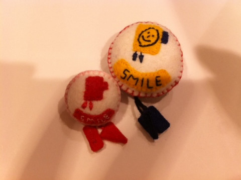 フェルトで作られたSmileバッジ。