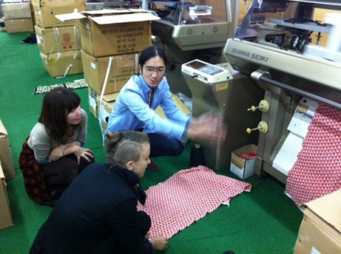 今回のハラマキデザイナーのひとりマリンさんのハラマキがちょうど編まれているところでした。