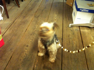 会いに行ったこと。 それは、先週のこと。 =================== これ、カワイイと思う。 さっそく食いつけ! すぐだ。 <イトイだ>=================== 社長が食いつけと言ったのは、 (JUN)さんというかたからのこのようなメールでした。 ==================ほぼ日のかわいいモノ好きのみなさんへ期間限定のイベントのご紹介です。 ブログ「パリときどきバブー」が人気のとのまりこさんがパリのアンディーク雑貨などを展示販売する東京イベントです。 このイベントの店主は犬のバブーなんです。 くわしいことは是非彼女のブログ 「パリときどきバブー」をご覧下さい! ================== さっそくブログを訪ねてみれば‥‥ヨークシャーテリア! このかたが‥‥店長!? ‥‥行ってきました。 JR西荻窪駅から歩いて5分。 商店街の八百屋さんのとなりにある 「ギャラリーK」に足を踏み入れると‥‥。 店長! か、かわいい‥‥店長!! 店長「‥‥‥‥‥‥」 ブログを書かれている、とのまりこさんがいらしたので、すこしお話をうかがいました。 とのまりこさんは、パリを拠点に活動するヘアメイク&フォトエッセイスト。 数年前にはじめた、パリの日常を届けるブログ、 「パリときどきバブー」が人気を集め、それをきっかけに6冊の パリガイドブックを出版されている女性です。 今回のイベントは、まりこさんががブログで紹介したパリのアンディーク雑貨や、彼女のセレクト雑貨をたくさん集めた催しです。 イベントの名前は「ぼわっと」。 フランス語で「箱」という意味だとか。 ギャラリー内には、かわいいパリの雑貨がいっぱいでした。 「ずいぶん売れてしまったので、 せっかく来ていただいたのに 申し訳なくて‥‥」 と、まりこさん。 ブログの読者がたくさんいらして、かわいい雑貨たちをそれぞれにお持ち帰りになられたそうです。 かわいい雑貨はもちろんですが、やっぱり一番人気は、店長のバブーくん。 かなりいろんな人々に写真を撮られたとか。 ぜひ、ぼくらもカワイイ写真を! と思ったのですが‥‥店長、動く動く。 いや、これ、むずかしい‥‥。 なかなかこっち向いてくれない‥‥。 あ、ブレた。 え? 抱っこしていいんですか? わ、わわわ、んんーーー! 口を、口をすごくなめられた! などとやっているうちにお客さんはどんどんいらっしゃるし‥‥。 自分たちでの撮影はあきらめて、とのまりこさんのブログから、写真を転載する許可をいただきました。 下の方に続けてあるすごくかわいい写真がそれです。 ああーかわいい。 というわけで、突然の西荻窪かわいいものレポートでした。 社長、食いついてきましたよ! バブーくんの、ちょっと怒ってるような顔つきがたまらなく、かわいかったです。 このイベント「ぼわっと」は、11月20日(日)まで開催されています。 みなさんも、店長に会いにいきませんか? 詳しくは、こちらをどうぞ。 このイベントを教えてくださった (JUN)さんのブログ、 「ひげねこヒルズ」も、ぜひ。 これもまた、かわいい。 やっぱり、つくづく、かわいいものはいいねえ。 2011/11/14 23:22 |