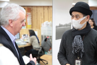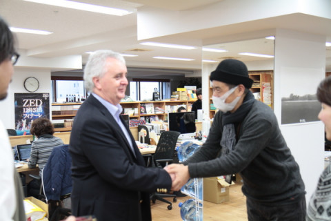 イギリスから来た男。 ほぼ日オフィスに現れた謎の白髪紳士。 弊社社長と談笑しているかと思いきや、かたい握手を交わしております。 じつは彼、英国はスコットランド西部のアウター・ヘブリディーズ諸島からやって来た Harris Tweed Hebrides社の最高責任者。 かつては14年に渡り 英国ハリスツイード協会の会長をつとめていらっしゃったハリスツイードの生き字引のようなお方です。 今回は、久しぶりの来日を機に、12月から発売されるほぼ日手帳 2012の ハリスツイードとのコラボレーションカバー のプロモーションの打ち合わせを兼ねてほぼ日オフィスを訪ねてくださいました。 ハリスツイードが英国の伝統たる所以をいろいろ聞かせていただき、興奮冷めやらぬほぼ日手帳チーム。 この模様は12月1日の発売に先がけて、再来週あたりから ほぼ日手帳 2012のページでご覧いただけるようになる予定です。 どうぞご期待ください。 2011/11/16 18:03 |