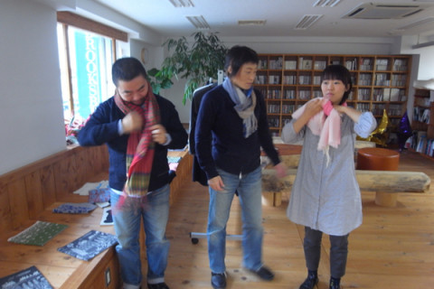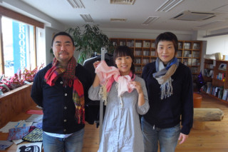 はじまりましたー! 昨冬販売をしてとっても好評をいただいた 「中羊糸」のくびまき、ことしも完成いたしました。 「中羊糸」っていうのは、このくびまきのために開発したあたらしい糸。 芯に、ウール、まわりを、コットンがつつんで、それをきゅっとひねって細い細い一本の糸を、つくったんです。 まんなかに羊が入っているので 「中羊糸」と名付けました。 (ちゅようし、と読みます。) 肌にふれるのはコットンなのでさらっとしていて、ちくちくしません。 そして、吸湿性がたかい。 中に入っているのがウールなので、繊維じたいの「張り」をうみ、じんわりとあたたかさを保ちます。 薄手で軽くて、あったかい。 あ、静電気も起きにくいですよ! ことしは、女子のみなさんから 「ぜひ、ほしいです!」とたくさんの声をいただいた大判のストールサイズもつくりました。 ちがいは、従来のマフラーサイズが平織りなのにたいし、綾織りだということ。 より、やさしい感じになってます。 写真はくびまき班がそれぞれお気に入りのマフラーサイズのくびまきをしてみているところ。 ストールサイズは、きょう、別の撮影のチームが持ってっちゃったんだって。 そちらはモデルのKIKIさんと玉村ヘビオさんの写真をどうぞ。 2011/11/18 11:42 |