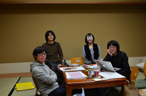 せっかくなので、スガノさんの姿もいれて、写真をとっておきました。 この4人にはもう1ミリも余裕がありません。 このあと、20時ごろに、もうひとりのメガネが来社すると、すべてが終わるのだそうです。 いろいろな意味で。 がんばってな〜。 2011/11/21 14:43 |