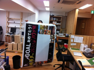 が日の出のように顔を出していますが、この巨大力作ポスターを持ってこれから渋谷クラブクアトロへ乗り込みます。