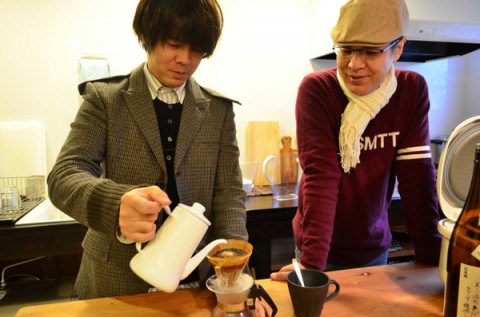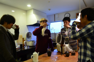 ジャブレンド。 明日の準備などをしに、キッチンにいったところ、漢たちがつどっていた。 なんでも、 指南役は、こちらのコンテンツを担当している 息子をみつめる父の表情でみまもります。 「マンデリン」という種類のコーヒーが、 (私、コーヒーは門外漢でして‥‥。) おいしくはいったようで。 そのあと、 「ジャブレンド」をつくっていました。 と、ここまで書いて何故 「ジャブレンド」というのか、ということを説明しなくてはいけないことに気がついた。 ‥‥んだが、少々めんどうなことがあるので、いろいろ割愛すると、 「ジャブ」と呼ばれているのである。 以後、「ジャブ= いや、すみません、くだらないことなので、もちろん、覚えておいていただかなくても大丈夫です。 2011/12/01 16:02 |
