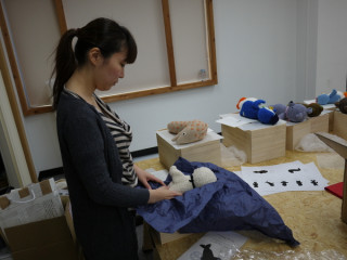 発送しました。 さきほど、三國さんの手編み中継に飛び入りで登場してくださったタカモリ・トモコさん。 タカモリさんが作られ、10月にほぼ日紙上で展示していた 作品たちは、ちょうど昨日、オーナーのみなさんのもとへ巣立っていったのでした。 2枚目以降の写真は、作品を梱包したときのようすです。 まず、和紙に作品のシルエットをプリント。 ものさしを使って和紙の余白を切り取ります。 (カッターを使わず手で切り取って、 和紙のまわりをわざと、 すこし毛羽立たせています) この和紙を貼った桐箱に作品を入れ、オーナーカードを同封。 ふたをして、エアパッキンでくるみます。 あとは、ストア担当の どの子も、タカモリさんにとってたいせつな子どもたち。 気持ちをこめて、送り出しました。 バイバイ、たくさんかわいがってもらってね。 ほぼ日では、これまでに、なんと180体(!)もの作品を送り出しました。 オーナーのみなさん、かわいい子たちは、いまも元気にくらしていますか? 2011/12/02 19:47 |