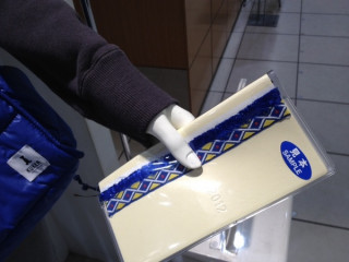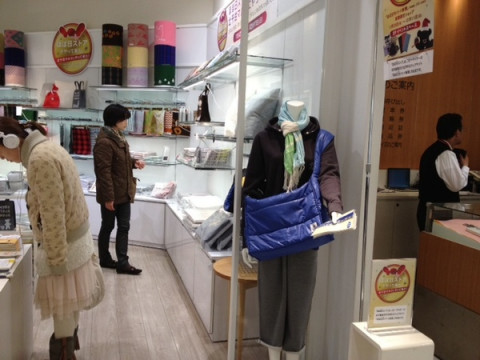わたしは毎回、このマネキンさんの手に商品を持たせています。