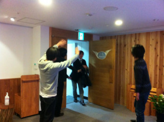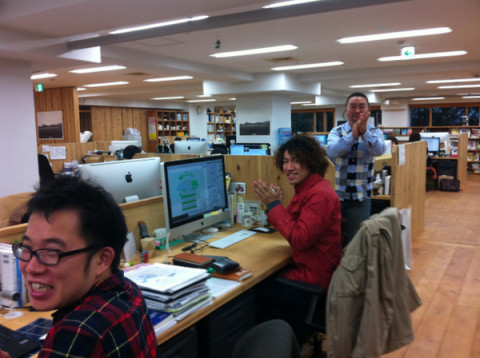校了しました 『吉本隆明が語る親鸞』校了しました。 印刷佐藤さん(1枚目写真中央) 「なんだかもう おつかれさまでございました。 あとは我々の仕事でございますので。 では、いただいてまいります」 長かった、長かった、この合宿生活。 この仕事だけのせいではありませんが、わたくし含めメガネ一同、かなり長髪化しております。 全員の、メガネのガラスの反射と天使の輪がまぶしいです。 社内のみんなが拍手してくれました。 花道を歩くメガネたち。 うれしいけど、校了はすこしブルー。 そうなんです、そうなんです。 2011/12/08 20:08 |