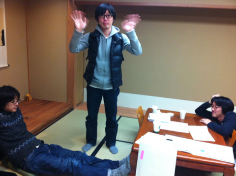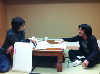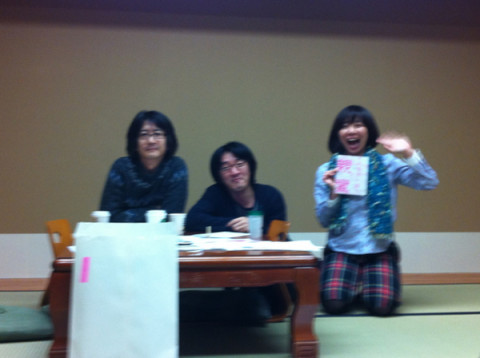 合宿終了 校了して、放心しているメガネーズにこの半年の仕事の感想を聞いてみましたがあまりにもまとまりのないことを三人三様言いましたので、ここでは割愛することにします。 (また、あらためて) そして、編集の小谷知也メガネさんは 「次の予定があるのでこれで」 と帰ってしまいました。 元気で明るい、みんなを引っ張ってくれる小谷さんでした。 ありがとう、小谷さん。 それからデザインメガネこと清水さんと深澤メガネさんが 「清水肇と深澤晃平が語る 『吉本隆明が語る親鸞』」 をくりひろげてしまいました。 そして、反省会まではじめてしまいました。 これはいけない。 この人たちは帰らないつもりだ。 そう思った私は 「お祝いにケーキを食べに行きましょう」 と誘い、雨の町に出ていくことにしました。 甘党ではないふたりはとても気乗りしないようすでした。 いつか、泥の中からきれいな蓮の花を咲かせるんだ! と あの日に誓った我々です。 『吉本隆明が語る親鸞』どんな蓮の花になったでしょうか。 本の仕上がりは年末、販売開始は年明けの予定です。 2011/12/08 20:20 |
