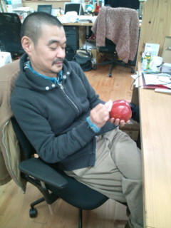 りんごを磨く人にはさまれるなんてそうそうできない体験です・・。