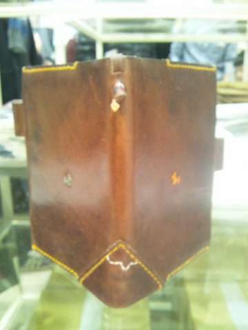 感動した! おつかれさまです! こちらのお客様は、菊池ご夫妻です。 写真のカバーは、アンリさんのカバーではないですかー。 !?はて、何かちょっとデザインが違うような? それもそのはず、カバーの頭部分の三角になっているところに注目! この部分、飼われている愛犬に、ガブリとされ、ダメになってしまったところ、青山にあるアンリさんのお店にわざわざ持っていっていただいて、アンリさんのお店からイタリアへ修理にだしたところ、このようなデザインで戻ってきたそうです。 大事に使っていただいてるんだなぁー。 感動した! 菊池さんご夫妻、ありがとうございましたー。 これからもよろしくお願いいたします! 2011/12/10 16:30 |