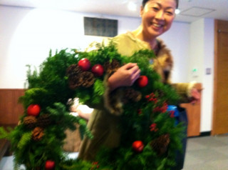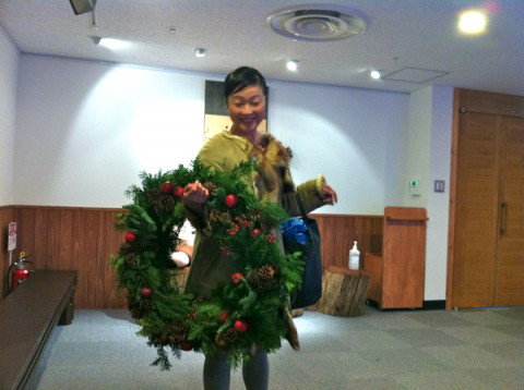 クリスマスリース 「やさしいタオル」のスタイリングをしてくださったスタイリストの伊藤まさこさんがこんなお届けものを! 「森のなかで拾った木や 松ぼっくりでつくった リースなんですよ」 長野県松本市在住の伊藤さん、すぐ近くに森や湖があって、ことしはその森で拾った木々や葉っぱをつかって、この大きなリースをつくったのだそうです。 とてもかわいい! ていうかものすごく大きい! 枝ぶりもよくて、これをつくるのはけっこうな力仕事だったんじゃ。 どこかに飾ることにいたしますねー! 伊藤さんスタイリングの 「やさしいタオル」は15日(木)午前11時から、受注販売をはじめます。 どうぞおたのしみにー! 2011/12/13 12:53 |
