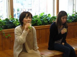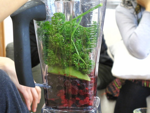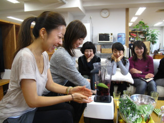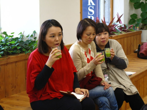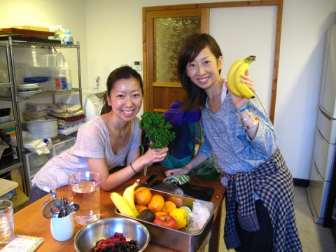 グリーンスムージー。 きのう、グリーンスムージーを日本に広める活動をしていらっしゃる姉妹ユニット 「シャリマ・ドゥ・ラ・テフテフ」のおふたりが、オフィスに遊びにきてくださいました。 数か月前から 「グリーンスムージー」を飲みはじめておりまして今回、ご縁あっておふたりにつくっていただくことになり、ミニ講座と試飲会をやっていただいたのです。 つくりかたをご説明いたしますと 「グリーンスムージー」はお好きなくだものと、葉野菜、お水を適量入れてからミキサーにかけるだけでございます。 手軽につくられるので、よろしければぜひ〜。 朝ごはんとして飲んだり、夕食を食べそこなった日の夜に飲んだり、それぞれにたのしんでいます。 おいしいですよ。 蝶子さん、園子さんどうもありがとうございました〜。 ■ちなみに 「グリーンスムージー」については こちらのコンテンツでもすこし登場しています〜。 2011/12/13 16:21 |