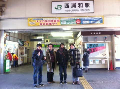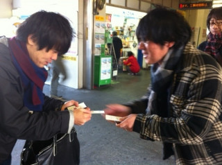 奥野と遭遇 こんな偶然もあるものだね、ということでさすらいチームは、石川直樹さんチームの奥野と帰りに駅で待ち合わせ。 おっくんも、印刷立ち会いが終わったとのことなのでいっしょに帰ろう、と言うと 「工場に忘れものをしてしまいまして 一度戻らなくてはなりません」 との返答。 ではなぜ駅で待ち合わせをしたのか。 よくわからないがまぁいいか、という雰囲気の風が西浦和の駅前に、一瞬吹きました。 みんなが「せっかくなので」とおっくんと名刺交換をしていきました。 いい一日だった、と思いました。 2011/12/20 13:44 |