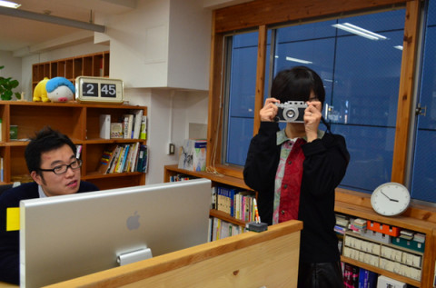 さかさまの写真 本日、製本加工工場から投稿した『ただいま製作中!』の写真がすべて180度さかさまになっておりました。 昨日、写真の回転について あれほど ご指摘ありがとうございます。 見づらくてほんとうにすみませんでした。 iPhoneなどのスマートフォンだと、さかさまの写真を正しく見ようとしてケイタイをさかさまにすると、画像もその動きを追うようにまたさかさまになっちゃって、けっきょくさかさまにしか見えませんが、 「その、くるっとまわした一瞬だけ 正しく画像が見えますよ」 とおっしゃってくださった方もいました。 ほんとうに申しわけないです。 なぜこういうことが起こったかというと、昨日装着した カメラ型iPhoneカバーのためです。 これで、シャッターの位置が以前と変わってしまったのです。 やさしい宇宙(システム)部 「その、あたらしいカバーでも 画像が回転しないように プログラムを書き換えます」 と言ってくれました。 2011/12/20 15:51 |