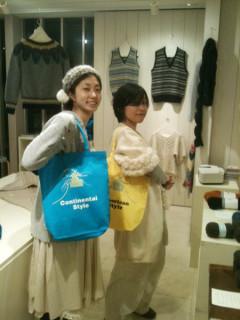 ですよ〜! 先日もお伝えした、 三國万里子さんの展覧会が、まもなく終了でございます。 さきほど、吉祥寺のフェブギャラリーにいる三國万里子さんとなんこのしゃしんが届きましたよ。 三國さんの手編みの作品は、すべてソールドアウトになってしまいましたが、三國さんチョイスの毛糸、三國さんプロデュースの 「ニッターズバッグ」はまだお求めいただけますよ〜。 明日からの連休、もしお近くまでいらしたら、ぜひ、ギャラリーにお立ち寄りください。 実物を、ぜひ! 2011/12/22 17:56 |