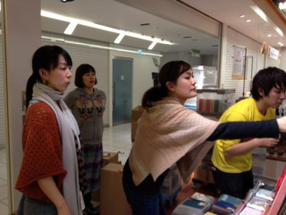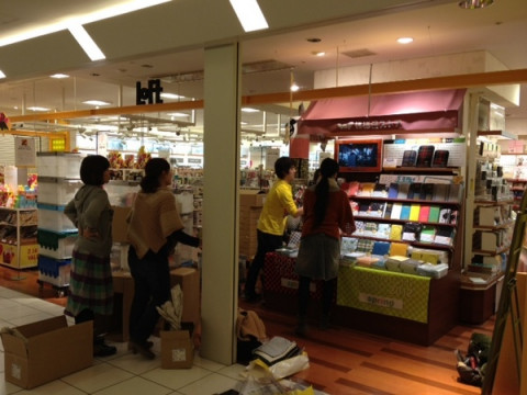 丸の内の店頭を手帳をはじめ、ハラマキ、タオルでにぎやかに、しています。