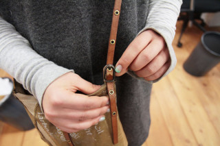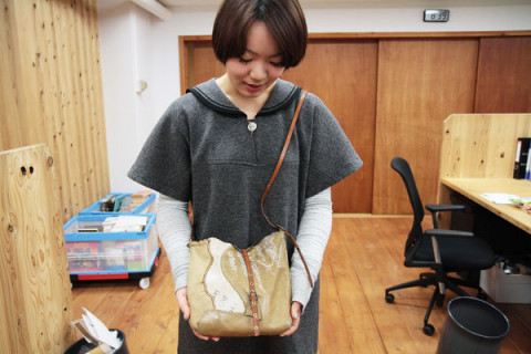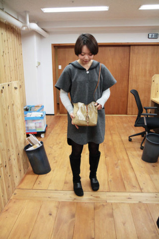 社内でも愛用(その3) 「私もundose使ってるんです…」 とつぜんアルバイトの岩井ちゃんが耳打ちしてきた。 「私のも見てください… undoseさん好きなんです。」 席に行ったらありました。 undoseのバッグがありました。 「見てください。二年前に購入しました。」 なるほど。 なかなかいい味が出てきたね。 「そうなんです。とくにここ見てください。 私はほとんどこの穴の長さで 使ってるんですけど。」 ポシェットとして使うのが好きなんだね。 あとバッグにネイルの色がとても合っててステキだね。 「結構使い込んでて、 少しキズとか汚れとかあるんですけど、 いい味出てきました」 うらやましい。 時間をかけて自分のものにしていってる感じが非常にうらやましい。 最後に私 undoseさんのおしゃれなバッグは2月7日(火)午前11時まで応募を受け付けていますよ。 2012/02/02 12:30 |