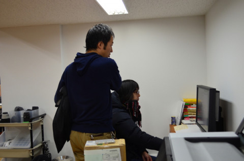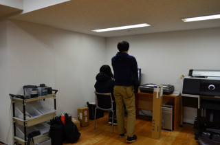 の部) 「夜は、待っている」の表紙の原画が届いたということで、デザイナー・メガネことプリグラフィックスの清水さんがすっとんできました。 (きのうの昼間のことじゃった) デザインを起こすためにスキャンをしながら、編集さんと相談です。 「ここで箔をつかわずして、 いつ使う?」 あああ、そうでしたそうでした。 ここ2冊は控えられていましたが、 「思い出したら、思い出になった。」 と 「ともだちがやってきた。」 の表紙の箔の使い方は、 「箔王」の名にふさわしい大盤振る舞いだったのである。 さて、今回、どうなりますことやら。 2012/02/03 17:49 |