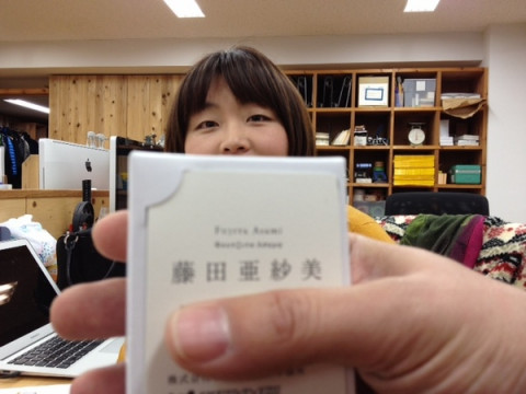 特別扱い ニューフェイスたちの名刺が届きました! わたしの隣の席の すごい笑顔で 「できたんですよぉ」 と報告してくださいました。 「聞いてよぉー。 ぼくは『できませんよ』って 言ってるのにさー」 「いやいや、 『いいよ』って聞こえたんですよ〜」 え、なになに?? ふたりのやりとりをまとめますと。 ・ギリシャが大好きなフジタ。 ・どうしても、名刺にギリシャ語表記で 名前を入れてほしかったフジタ。 ・ふつうに断った、ぐっさん。 ・断られたのに、気づかずに、 ゴリ押ししたフジタ。 最終的には、フジタの名刺にだけ、ギリシャ語表記で名前が入っているという特別扱いになってしまったというわけです。 よかったですね、フジタさん。 めずらしい名刺のできあがり。 2012/02/06 17:53 |
