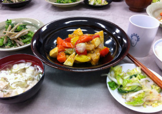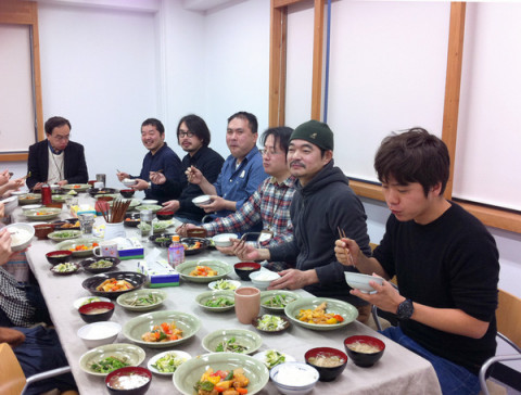 今日の給食。 今日のメニューは、酢豚でーす。 きゃっほぃ! 揚げて炒めるという二段階調理法料理なので食卓に上がりにくい一品です (自己分析)。 だからこういう時に食べられるのはうれしい♪おにくがやわらかくて、酢がきつくなくて、油っぽくない。 飯島さん、すごくおいしいです! ふと顔を上げると、正面の列が、男性ばかりで、なんだろうこれ、どこかで見たよな風景。 あっ。山小屋だ。 「明日は4時起きで、山頂を目指します」 弊社山部(私設)メンバーの田口がリーダーっぽい。 2012/02/14 15:56 |