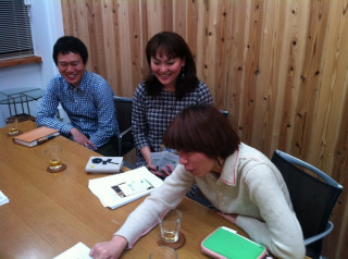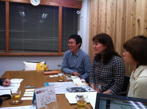 カレンダー大使たち。 カレンダーチームが日経新聞さんに取材されてます。 「あ!カレンダー大使さん!」 と第一声で呼びかけてくださった記者さんの聞きっぷりに気をよくしてか、 それぞれがクロストークで実体験や取材の時の様子をまじえて身ぶり手ぶり、うれしそうに話していきます。 聞かれていくうちに 「ところで、ここはこうだったら どう思いますか?」 と2013年版の企画にむけて逆取材をする熱心さも。 すごーーーーくジョーゼツだったのにこれで取材を終わります、と言われた瞬間に口をそろえて 「これで大丈夫ですか」ってはもったりして、カレンダーチーム、なんだかナイスチームワーク! ひとりずつが熱く話す写真を撮ろうとしたらなんだか同じような写真になってしまいました。 すんません‥‥ 2012/02/14 16:11 |