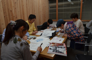 画伯たち。 さて、ワレワレハ、宇宙人である。 じゃなくて。 ワレワレハ、2月の29日の閏日に、とあるテキスト中継祭りを開催する。 社員総出のテキスト中継祭りだ。 (社員諸君、27日にテキ中の 予行練習をするぞ! 自信がないひとは、 12時からテキ中マスター・スガノさんが 講座をひらくぞ。 あ、スガノさん、よろしくね。 いま、ここで依頼よ。) ページデザインは、みちこ。 写真は、デザインするにあたってのイラストなどをほぼ日の素人おっさん画伯(一人を除く)に描かせているところである。 それにしても、2月29日を乗組員一同はかなり楽しみにしている。 2012/02/23 17:48 |