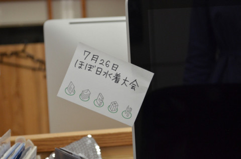 波紋。 おねえたまたちがざわついている。 どうしたどうした? 「何か情報を握ってますか? スガノさんのモニタに、 『7月26日 ほぼ日水着大会』って はってあるんですよ。」 いや、なにも知らん。 「これ、なんなんですか?」 いや、だから知らん。 「ヤバイじゃないですか。 いまから、準備!」 「準備って、水着?」 「違うよ!! ダイエットだよ!!」 んだな。ダイエットだ。 「まにあわない‥‥。」 スガノさんは席を外して居ないので、真相は闇の中である。 女子の不安は深くなるばかりだ‥‥。 2012/02/23 18:35 |