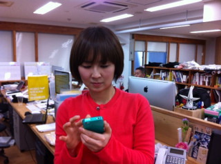 この春デビュー。 まだ、東京は寒いというのに、キュートな春色カーデを着用のタナカ。 なんと、その手にはiPhoneが。 「前のがちょっと壊れちゃったから、昨日買ったんだよー。」 ちょっと壊れる、ってのがどんな状態か知りませんけど、晴れてiPhoneデビューおめでとう。 カーデとiPhoneカバーの色がマッチしてて素敵ね。 はじめてとる画像が製作中にあげるための画像なんですって。 しかも、私とさいとーの。。。 なんか、申し訳ないです。 2012/02/27 12:32 |