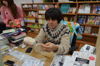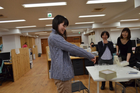 編みものいろいろ。 先週の金曜日のよるに、なんこ先生が現れた。 「で・き・た!」 といいながら。 何がと申しますと、 三國万里子さんの 「今日の編みもの」のなかの 「いちばんあみでがある」 (編集者の三角さん曰く) カーディガンができので、みんなに見せに来たのでした。 弊社のニットブームに最初に火をつけた人は、やはり、先の方へ行っておられる。 そんなふうにして、もりあがっていたら、おっくんが、 「ぼくは、かぎ針ですけど。」 といって作っているものをみせてくれました。 「パンダになります。」 おっくんは、 タカモリ・トモコさんに、あみぐるみの作り方を習っているところなんだそうです。 「自分の子供と同じぐらいの 大きさだなあと 最初はおもっていたんですが、 いまは、子供がずいぶん おおきくなってしまった。」 なんにつけても、毛ものはいいですねえ。 2012/02/27 13:31 |